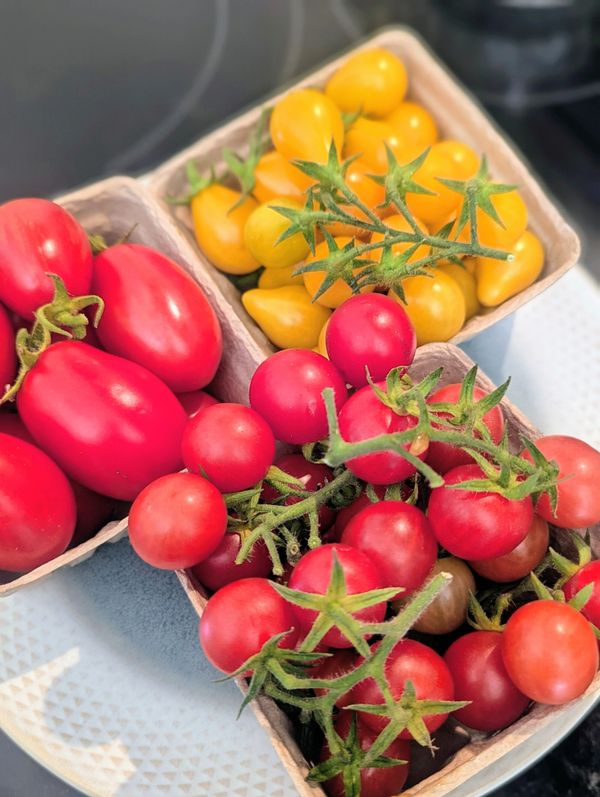 A combination of Tomato, Lettuces or Spinach, or Arugula, Carrots Seeds, Radish Seeds, Chives or Green Onions, Marigolds or Calendula or Cucumber or Peppers in a black fabric pot. The larger the pot, the more veggies. Small $21, Medium $33, Large $45